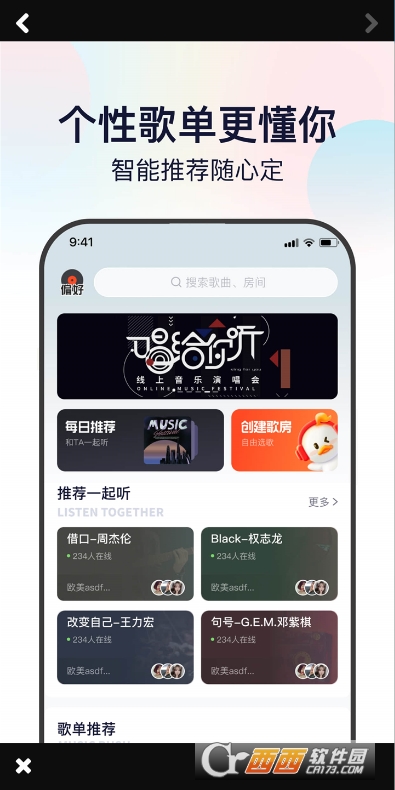 4、智能歌单,音乐解读个性,智能推荐懂你心情。