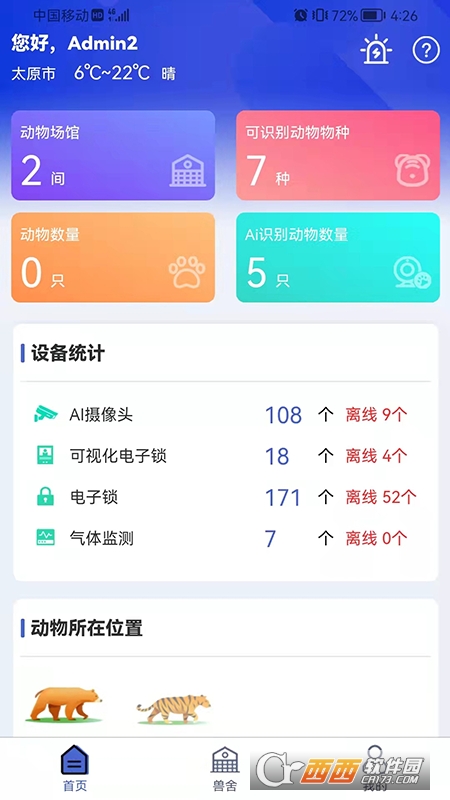 兽舍安防(智慧动物园)是一款动物笼舍安全智能管理系统,使用方法简单,可以随时绑定电子安全锁,更好将动物关在安全区域里,实时统计所有的设备,线上智能管控,还可以查看动物场馆、动物数量,支持AI识别动物物种和数量,管控更方便,鳄斗163手游网使用吧!