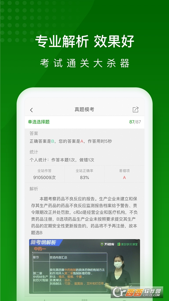 执业药师万题库是一款专门为医学生打造的学习辅导软件,里面收集了大量的医药考题知识,是医药考试的小帮手,还有视频免费学习,执业药师万题库同时还汇集历年海量真题,为考试做好充足的准备,每天还有名师课堂直播讲义,功能非常的多,并且全部都是免费使用的,有需要的用户快来下载执业药师万题库使用吧。