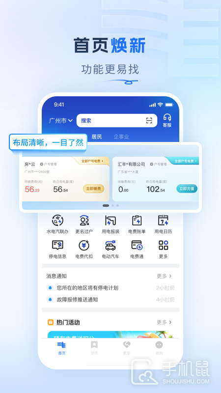 1、下载并安装南网在线app,进入软件首页可以查看各项功能