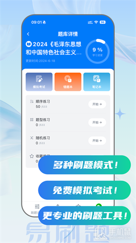 易刷题支持用户自定义做题模式,用户可以选择自己想做的题目类型、难度和数量,来进行有针对性的训练。这样可以更好地满足用户的学习需求和提升效率。