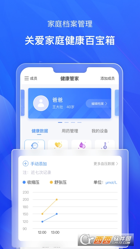 知疾(健康管理)是一款健康管家服务软件,拥有家庭档案管理,可以随时查看健康数据、用药管理、我的设备,随时添加相关设备,随时进行身体数据检测,采集所有的数据同步上传,更好了解各方面健康问题,支持手动编辑数据,鳄斗163手游网即可安装使用哦!