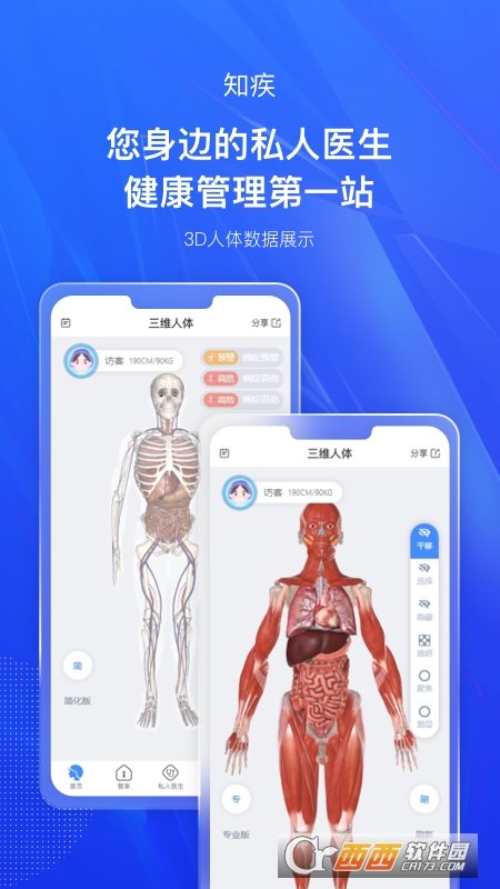 知疾是管理个人健康的应用,实时追踪用户血糖、血压、心率、体温、血氧等健康信息以及体检报告的数据,通过三维人体数据展示,为用户提供AI私人医生服务,智能评估身体系统健康。知疾关注国民健康管理,致力于为用户提供从疾病预防到慢病管理;