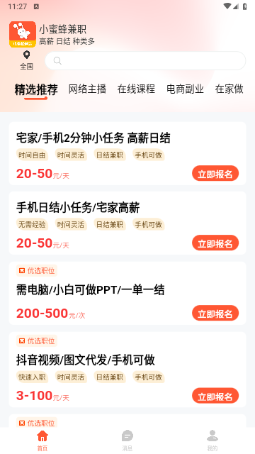高薪日结——打开小蜜蜂兼职,家(学校)附近兼职岗位刷起来,先沟通了解再入职,帮你少走弯路多赚零花钱~