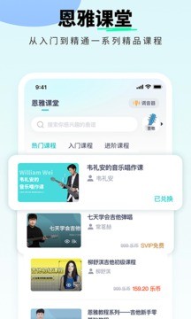 恩雅音乐app是一款非常棒的乐器学习软件,该平台内有非常丰富的超级曲谱,适合流行乐队各乐器和声乐训练,还有非常多从入门到精选一系列精品课程,支持多种乐器专业调音,内容丰富,功能齐全,全新版本所提供的乐器以及曲谱丰富多样,满足更多用户学习需求,有喜欢的小伙伴们快来下载体验吧!