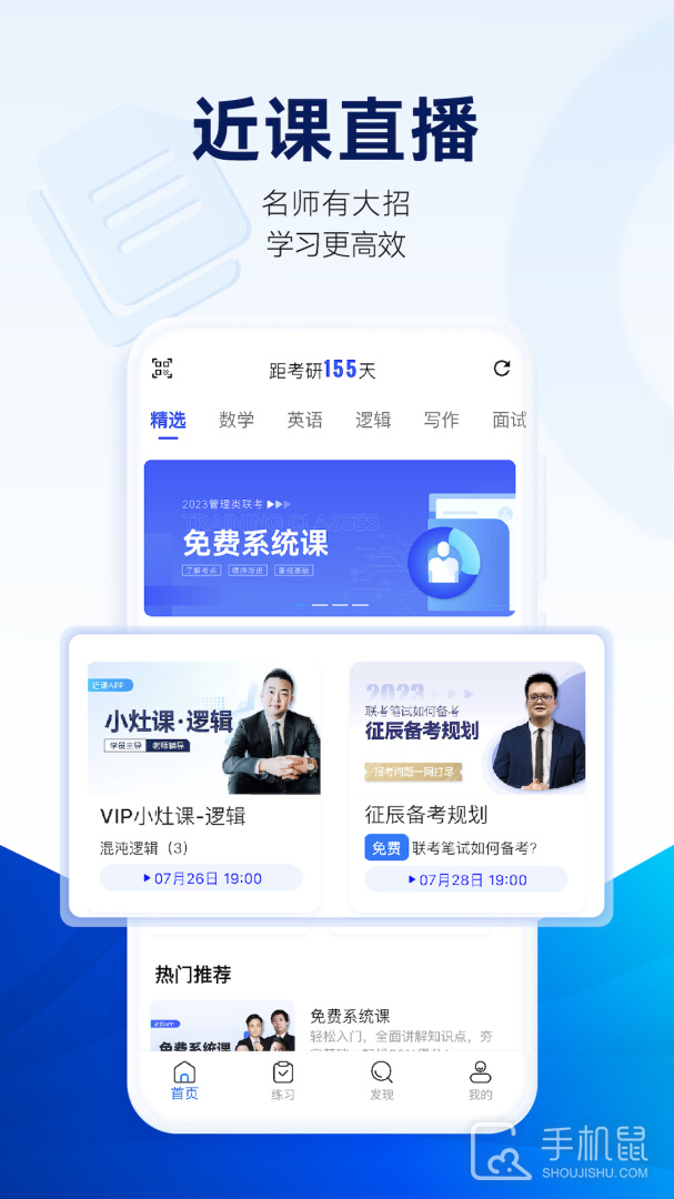 考研,即全国硕士研究生招生考试,是中国高等教育体系中选拔硕士研究生的重要途径,也是许多本科生毕业后继续深造的选择。近课考研是一款专为即将参加研究生考试的学子们量身打造的备考工具应用,该应用集合了全面的考试资料和复习资源,旨在帮助用户高效备考,提升考试成绩,无论是备考规划、知识点总结还是模拟考试、难题解析,近课考研都能满足用户的需求,它提供丰富的教材资料和课程笔记,可以快速系统地复习重点知识,内置多套真题和模拟试卷,用户可以根据自己的进度进行针对性练习。
