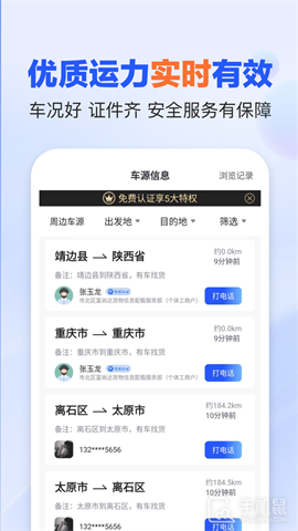 1、小时更新实时货源、车源10万+条