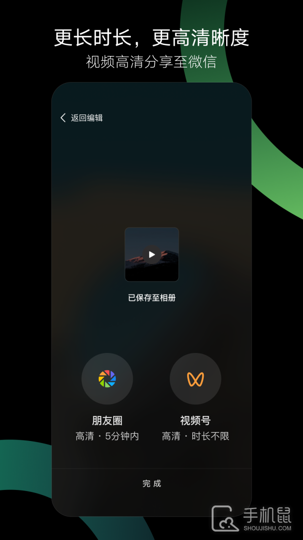 完成剪辑后点击保存按钮后,您可以选择将视频保存到手机相册,并在其他社交媒体平台上分享,比如微信、抖音等。