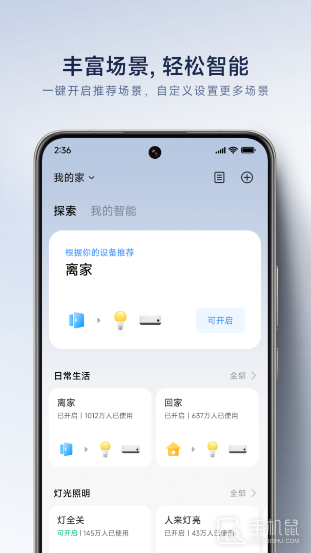 2、还提供智能推荐功能,根据用户的使用习惯和需求,提供个性化的智能场景推荐。