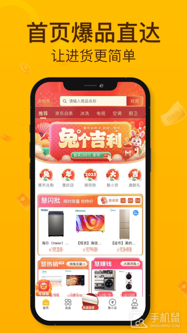 为客户提供了一件代发、下单有礼、预存款、慧闪批、慧囤货、慧热销、每月提货有礼、下单返慧豆、专属客户经理对接等家电批发采购场景。
