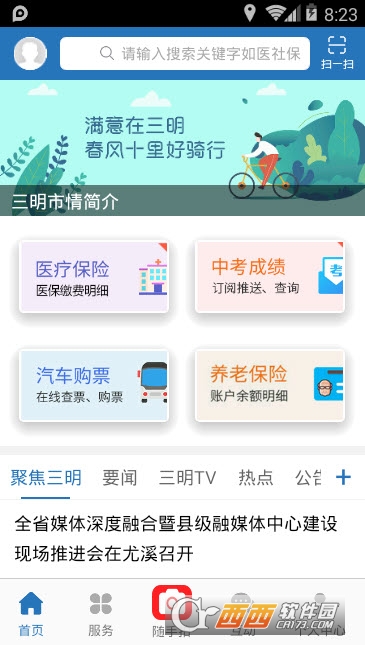 e三明app是一款专门为三明市的广大市民们准备的手机政务服务以及生活社会保险服务软件,在这里可以随时查询养老医疗等保险,还支持中考成绩查询,汽车票查询购买,便民12345等等功能,非常齐全,需要的可以下载e三明app使用!