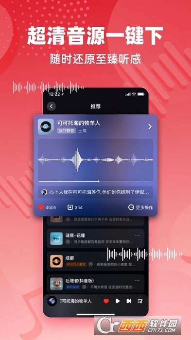 超清音源,无限下载, 一键保存歌曲。随时还原高透声音质感,带您感受最真实的现场