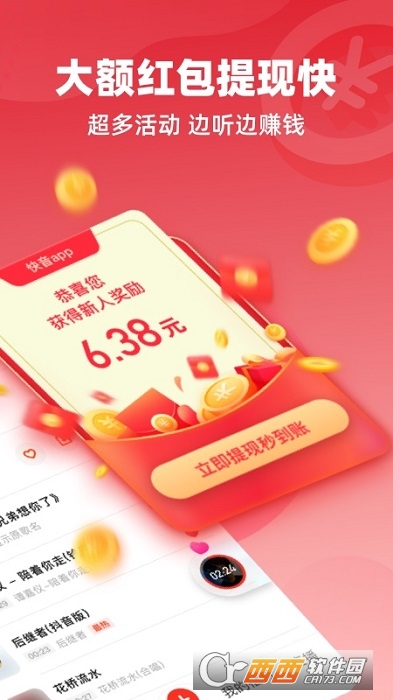亿元红包每天领, 提现速度秒到账, 十几种福利活动,让你边听边玩边赚钱!