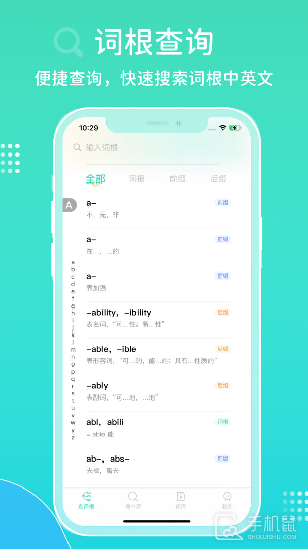 图样词根词典是一款提供词根词缀查询和学习的工具,帮助用户深入了解单词背后的意义和构成规律,拓展词汇量,提高语言表达能力。
