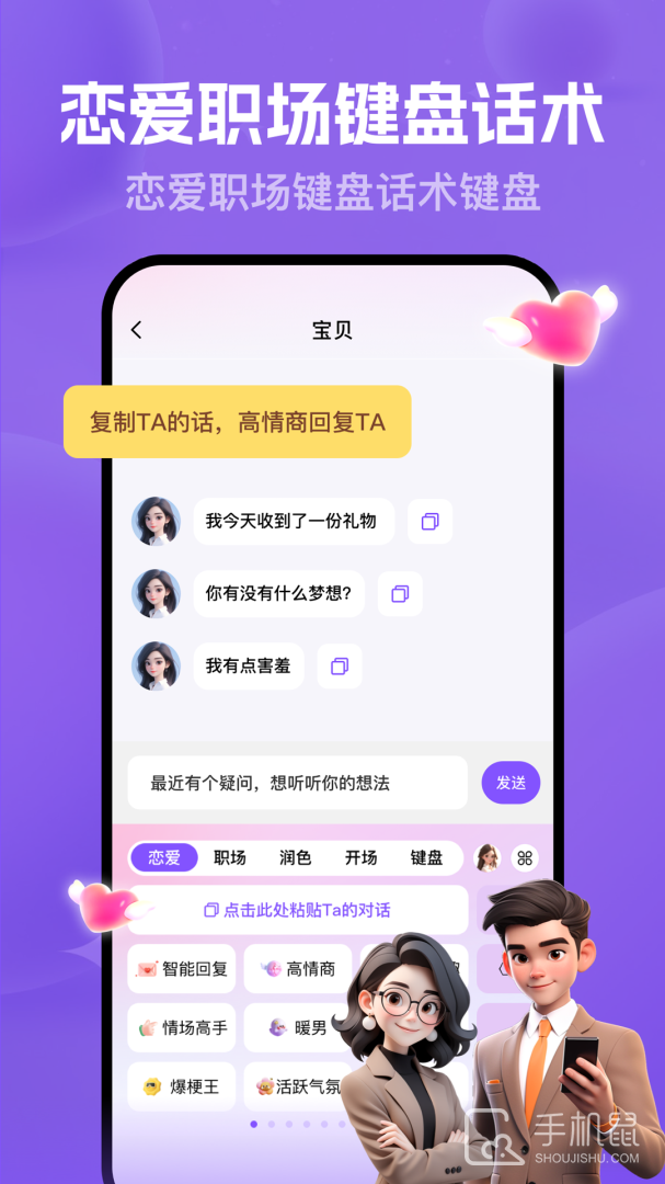 [百万话术] 超百万恋爱聊天话术,再也不愁和女生聊什么。不会回复女生说的话,只需搜一搜,就有你想要的回复。新增了大量话术