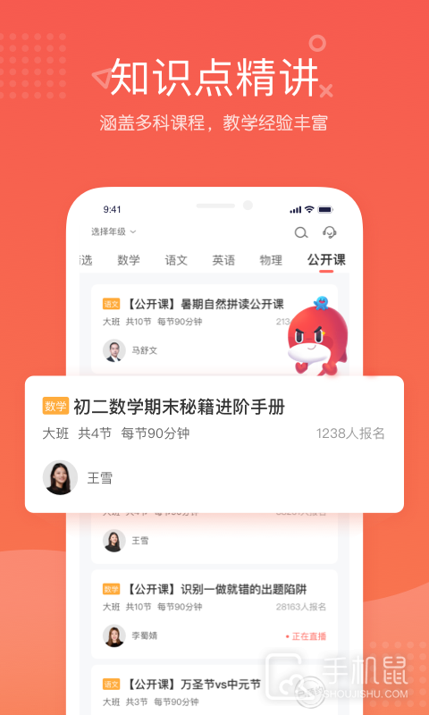 锦书在线APP支持小学,初中,高中全学段课程内容辅导。包含语文,数学,英语,物理,化学,科学等学科同步课程,搭配公开课,名师好课等,帮助中小学生快速巩固课内知识点。