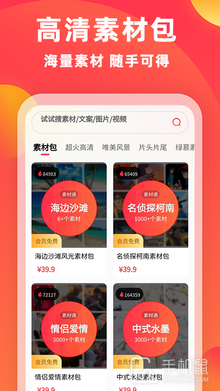 1、每日更新高清素材包,包括唯美系、治愈系、搞笑系列、经典转场、绿幕特效、美剧复联系列等。这些高清无水印素材包含热门素材,一键获取,让你的视频更加精彩