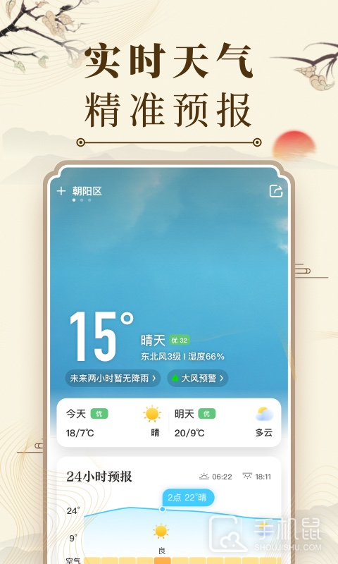 中国天气网战略合作伙伴,支持天气背景随天气变化,提供空气质量、灾害预警等全方位信息