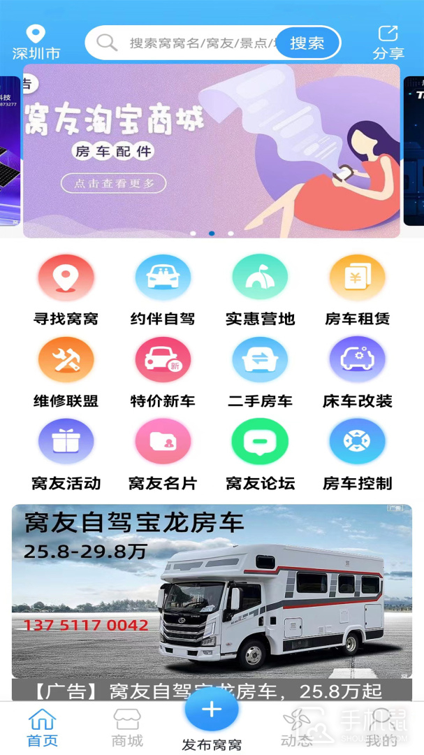 5、寻找优质的营地帮你轻松找到停房车、停拖挂、搭帐篷、卫生间、自来水、能接电、能做饭、能买菜、能钓鱼、能游泳的位置,窝友之家app 您的生活管家