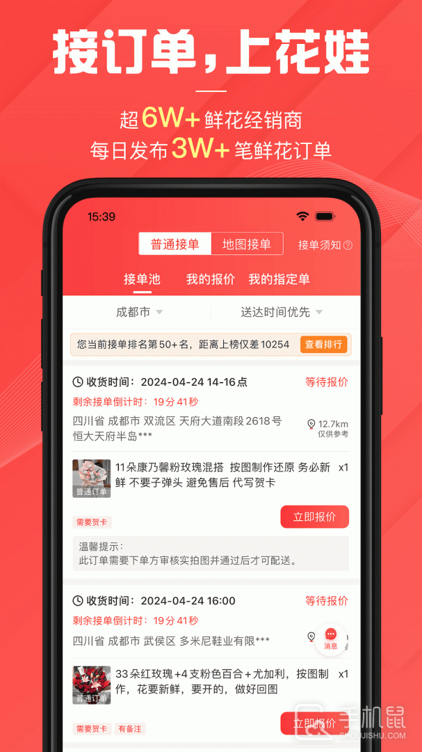 4.万家花店竞价,选择符合条件的花店,分配订单完成配送。