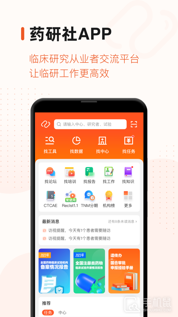 药研社app为用户提供了丰富的医学资讯、健康保健建议和药物指南。专为医疗研究与临床试验领域工作者量身打造的信息查询与服务,旨在加速临床试验进程,提升工作效率。药研社app不仅汇聚了最新、最实用的行业资讯,助力从业者紧跟时代步伐,持续成长,还精准聚焦临床试验专业人员的需求,提供包括CTCAE 4.03、CTCAE 5.0、RECIST 1.1标准、常见不良事件(AE)对照、异常结果解读、TNM分期指南、中心与机构信息、伦理审查与会议日期查询、试验项目搜索、研究者匹配等一系列专业工具与数据服务。