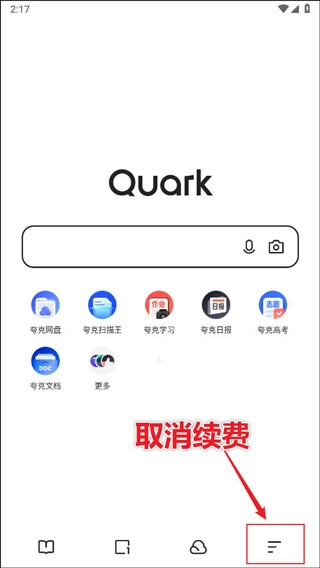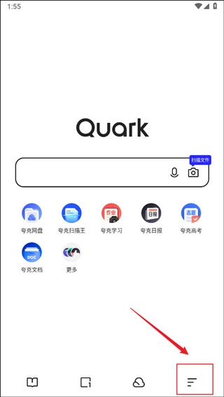 1、打开夸克浏览器,然后点击右下角的菜单选项