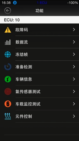 读故障码、清故障码、读数据流、准备检测、传感器测试车辆信息等