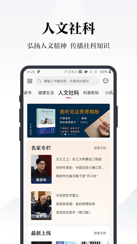 邀请知名作家或学者对课程主题作介绍、讲解或评论,整合名师课程、知名作家和学者的文化专题或主题演讲。