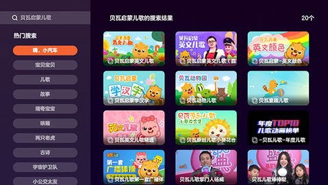 贝瓦儿歌tv版是一款是一款专门为八岁以内孩子们打造的亲子互动思维启蒙平台,它里面有着专业的学习方式和学习功能,可以激发孩子们的思维灵活性,让孩子们更加的开朗活泼,里面包含了好听的儿歌,有趣的动画,能够跟随里面的卡通角色一起学习,让宝宝更加快乐。