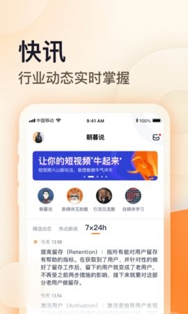 朝暮说app有超多的热门资讯,在这里您不仅可以学习如何制作一个爆款视频,收获更多的粉丝,这里有超多的短视频运营小技巧,您可以在话题圈中查看热门的观点,还可以发布弹幕和热门老师互动,每日还会有新课为您推送哦~