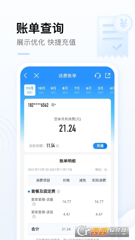套餐流量、话费余额,一站式账单,随时随地精确查询,方便快捷!