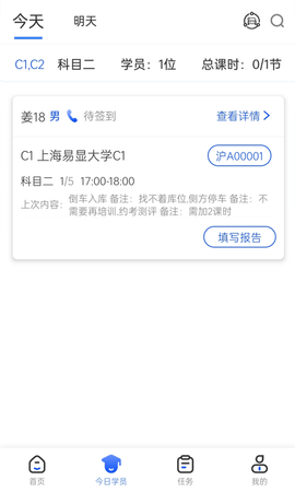 1、教学报告:今日学员详情页可查看学员练车情况,教练针对性教学~学员学车更容易,教练教学更轻松!