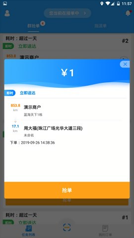 1、接单、抢单版块新增了扫码收单,加入的抢单群、收到的指派单;