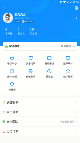 在骑手的个人中心里可以设置自己的配送模式,目前快跑者拥有抢单模式,中转模式,集中配送模式。
