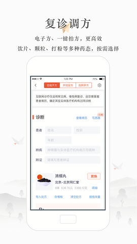 -门诊患者上传处方单到「小鹿中医医生版」,医生可以随时查看患者电子病历,与患者沟通、进行线上复诊、线上开方。患者可直接线上购买优质地道药材,闪送顺丰快递到家;