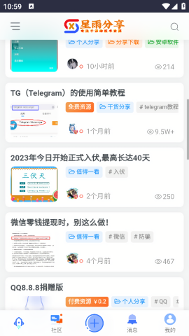 星雨社区官方正版app是一款技术资源分享平台,它里面提供了大量的专业技能学习资源分享,可以在当中搜索各种你需要的资源,同时还有部分资源区,包含了手机软件,电脑软件,游戏资源,技巧分享等多个板块,可以从中获取超多资源,还可以发布帖子寻求其他用户的帮助。