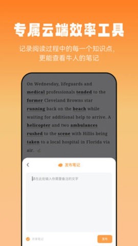 2、拥有及时更新的海量阅读和听力库,并提供智能语音高亮跟随功能。
