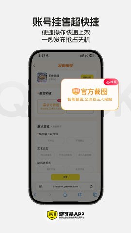 游可易此款交易平台中能够有多种功能像是账号估计、买卖账号、捡漏专区等等相关功能在此都是可满足到喜欢玩游戏的你需求,可让你低手续费去寻找到专业团队为你解决一切交易措施改变,让你与专业客服联系从容了解到不同情况之后再决定是否进入交易过程,让你整体交易起来安全系数得以保障是喜欢玩游戏的你值得信赖的平台。