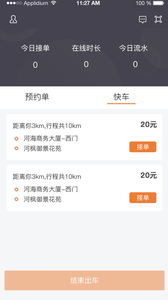 实时接单出行,在线查看订单详细的信息,在线立即接单;