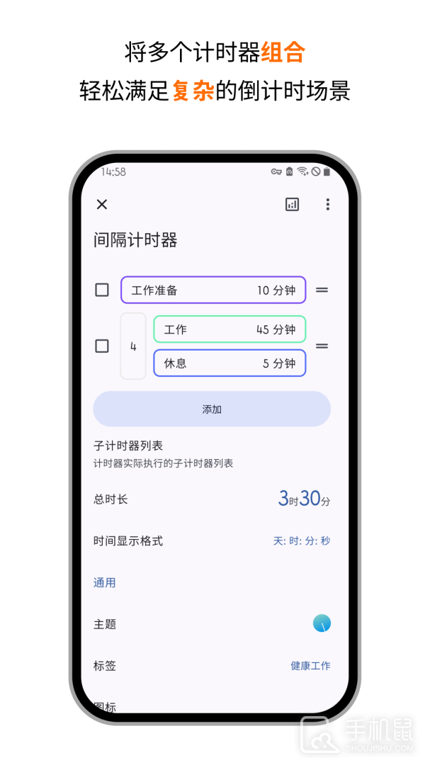 3、可以自定义计时器的颜色,添加标签和图标,让计时器的用途一目了然。