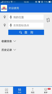 3、换乘查询:不知道公交站名,只需输入地点名或地图选点即可;