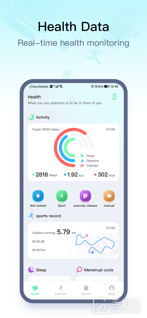 免疫力、疲劳度、运动记录。各类健康数据,首页实时监控