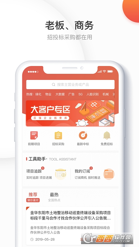 千里马招标网为用户提供招标预告、招标公告、中标公告、招标变更信息、采购信息、审批项目等招投标信息的查询,提供企业信息、政府代理、相关人员资质的查询,以及标书代写、竞争对手监测等业务,覆盖全国所有城市,汇聚大量业主和商家信息。
