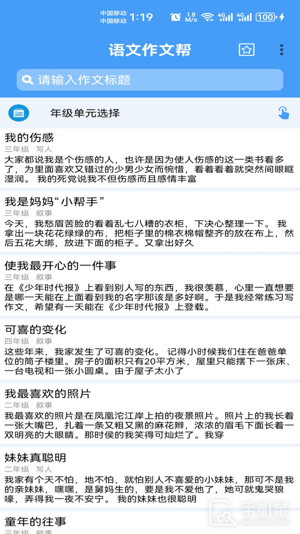 语文作文帮app是一个学习软件,帮助用户提升写作水平的应用,如果你想学好语文,提升作文水平,这款软件就可以帮到你,为你提供很多有用的写作知识。平台为大家提供了超过3000篇高分作文,涵盖了写人、叙事、写景、状物、议论文、说明文、日记等多种作文类型。这些作文素材都是经过精心挑选和审核的,质量高且内容丰富,能够满足不同学生的写作需求。用户可以根据年级和单元进行精准搜索,软件会智能匹配推荐相关的优秀作文。这种搜索方式不仅方便快捷,还能帮助学生快速找到符合自己学习进度的作文素材。