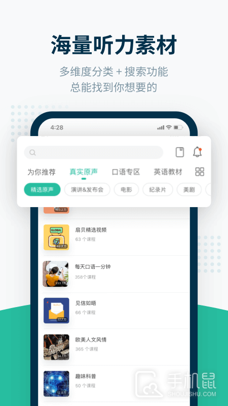 此app设计简洁易用,用户可以根据自己的学习需求和水平选择不同难度的听力材料,同时还有测评和个人进度记录功能,使用户能够清晰地了解自己的学习进展。