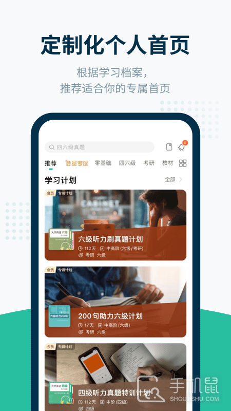 2、四六级、托福、雅思,我们精选了历年真题对你进行强化训练,即使只有一分钟也可以快速开始练习