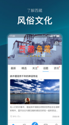 西藏角落app是一款非常好用的手机资讯平台,也是专门为西藏人民设计的线上新闻和文化交流软件,功能丰富实用,不仅可以在线直接浏览,还可以让我们一起了解西藏的风俗文化、风土人情、风光地貌等等,还有一些关于西藏的各种资讯信息,让我们在平台上更加的了解西藏的特色,感兴趣的用户们就赶紧来下载使用吧。
