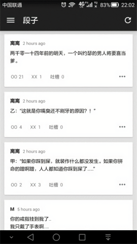 3、文章浏览支持左右滑动操作,段子/无聊图可以OO/XX和吐槽;