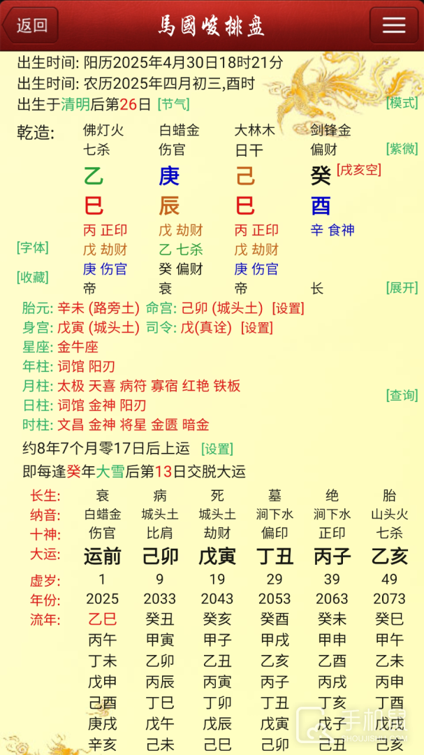 生辰八字是我国汉族当中比较重要的民俗信仰之一,古时候很多算命先生都会依靠生辰八字来算命,现在也依旧有不少的人比较相信这方面的,通过自己的生辰八字来测试自己的运势等等,《八字排盘宝》是一款专为喜爱八字算命和命理学的安卓用户设计的应用,通过该应用,你可以轻松地输入出生日期和时间,然后生成个性化的八字排盘报告,不仅提供专业准确的八字算命服务,还配备了丰富的解读内容,包括命运走向、财运、事业、婚姻、健康等方面,它还会根据你的八字数据进行分析和预测,并为你提供有针对性的建议和指导,助你迈向成功之路。