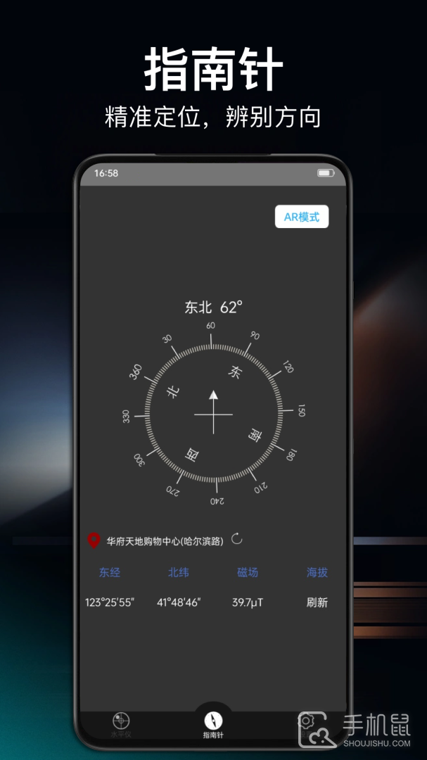 360指南针具有简洁直观的界面设计,易于使用。它利用手机内置的磁力计和加速度计准确测量地球磁场,为用户提供准确的指南针读数。还能显示当前位置的纬度和经度,并且可以标记喜爱的地点以供日后参考。